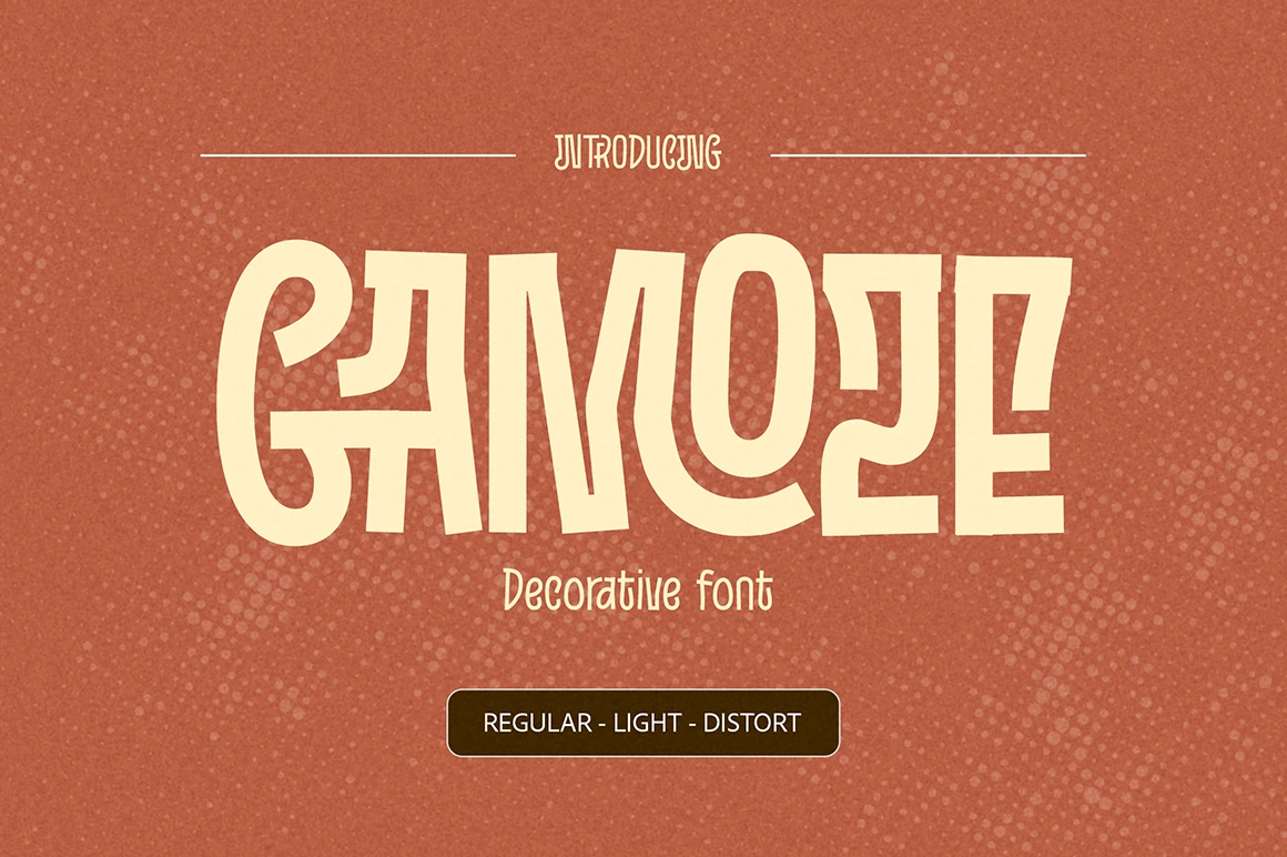 Gamoze is a Stylish and Casual decorative font designed to stand out in any creative project. Available in three distinctive styles—Regular, Light, and Distort—each variation carries its own personality while maintaining a cohesive design language. Enhanced with a set of unique ligature variations, Gamoze offers flexibility and originality, making it the perfect choice for bold headers, striking logotypes, and eye-catching branding projects.