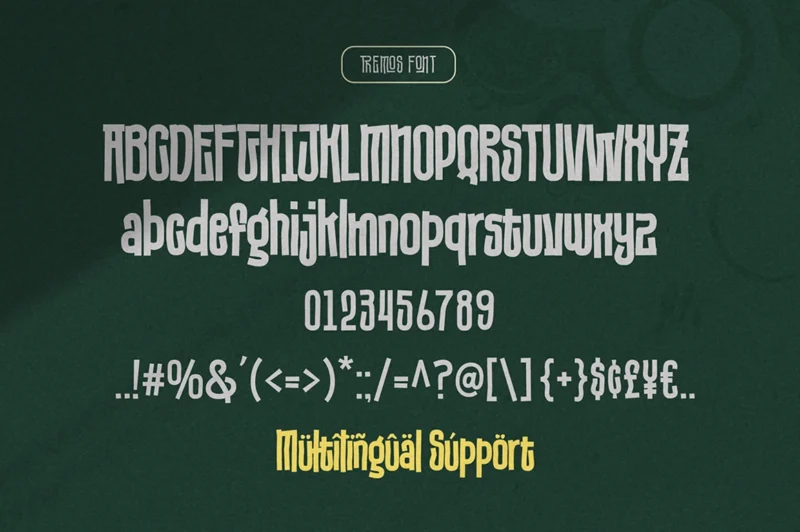 Tremos is a unique and modern decorative display typeface, crafted to bring bold character and striking style to any design. Featuring distinctive ligatures, it offers a creative edge that stands out in headlines, branding, or logotypes. The font comes in three versatile styles—Light, Regular, and Bold—allowing you to adapt its personality to various design needs. Whether for editorial headlines or memorable brand identities. Tremos delivers a perfect balance of style and impact.